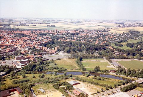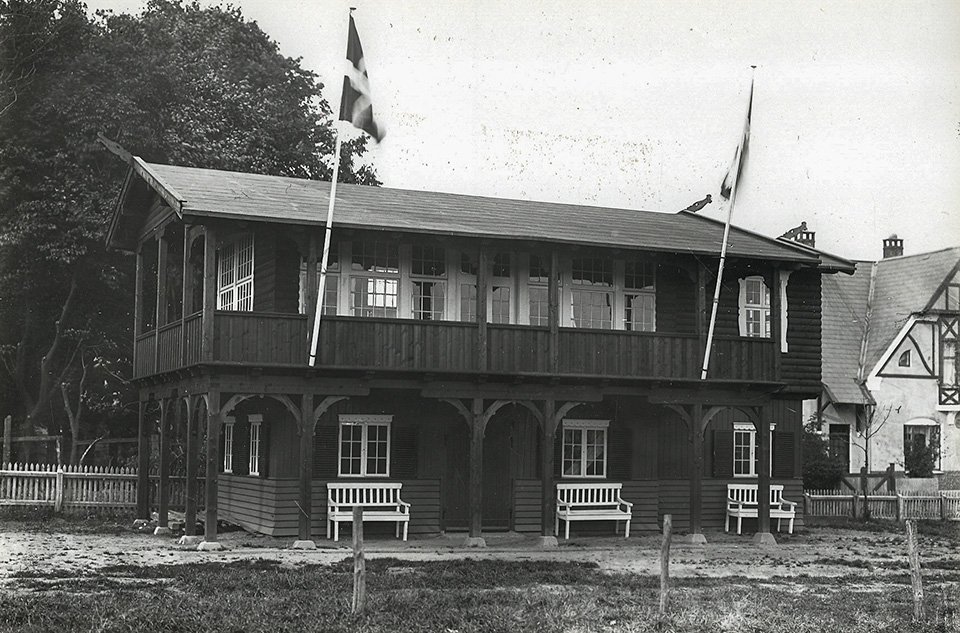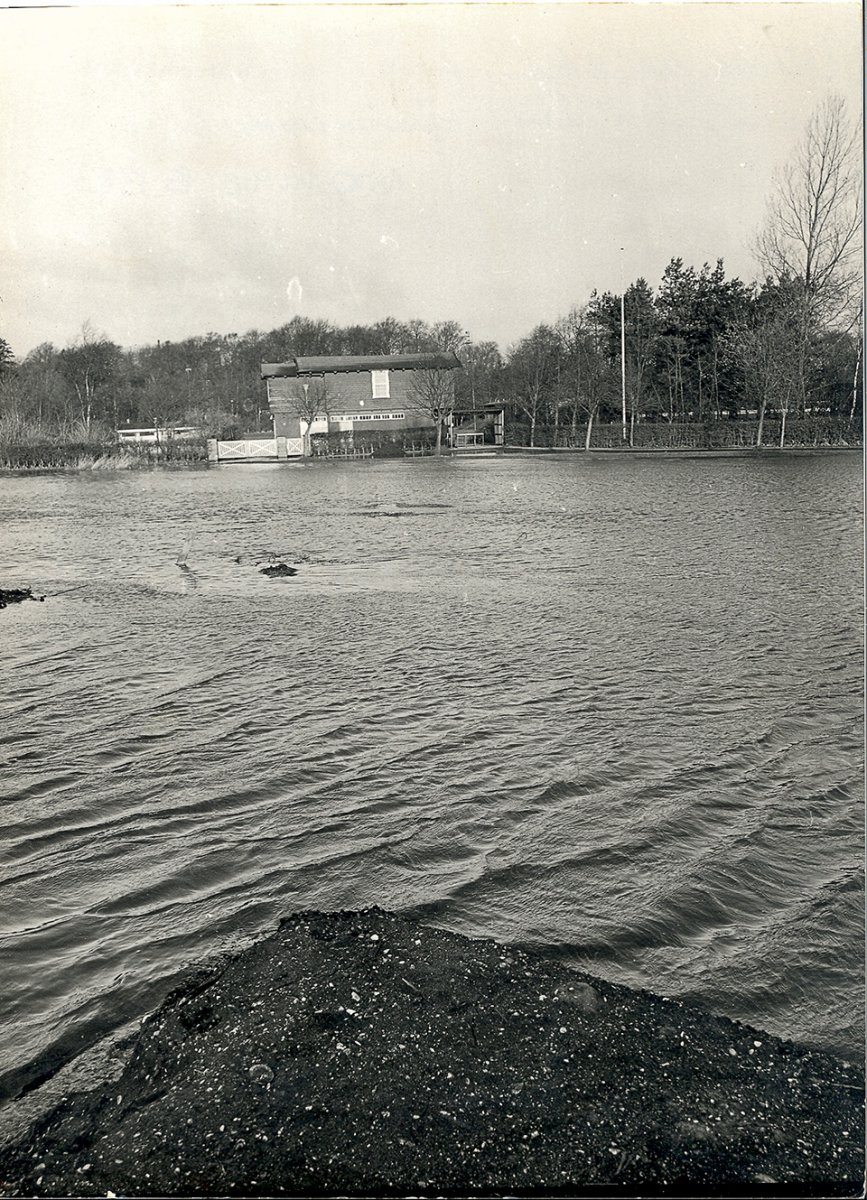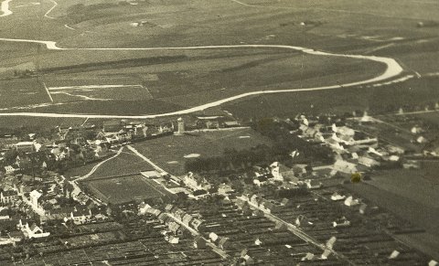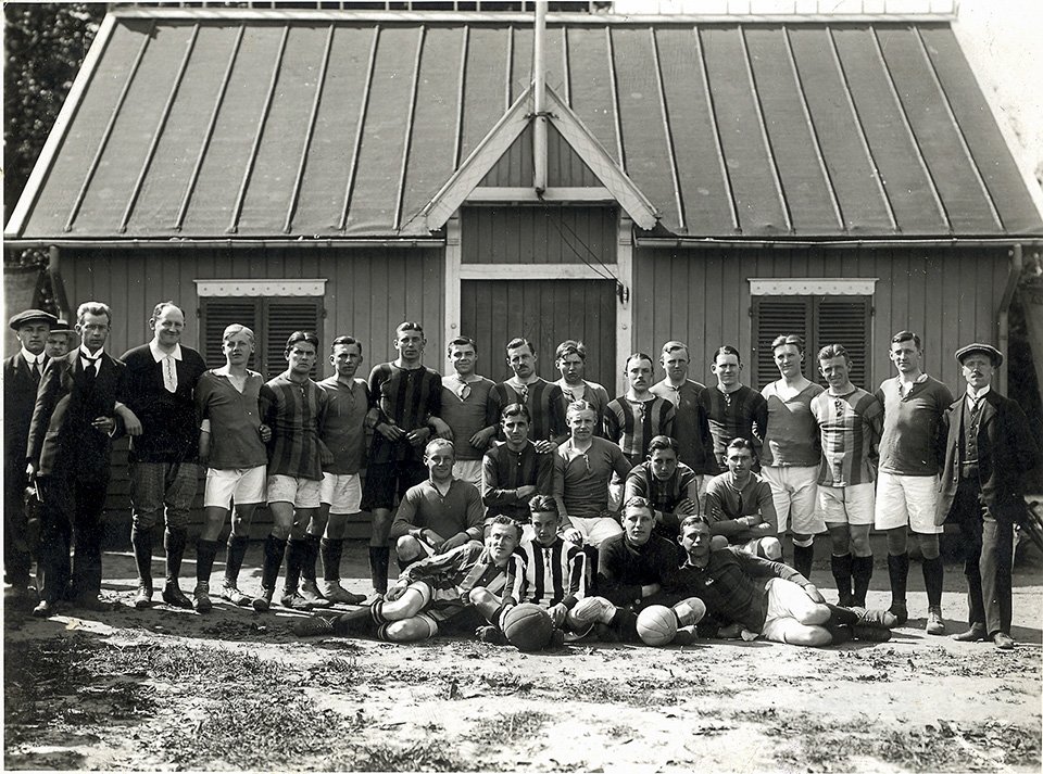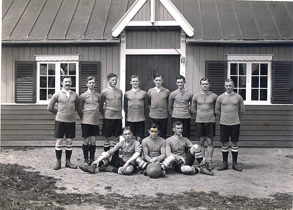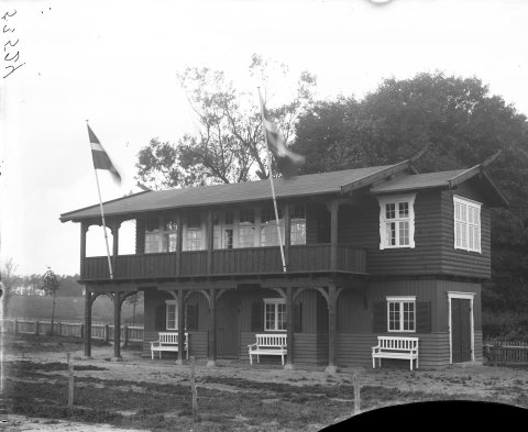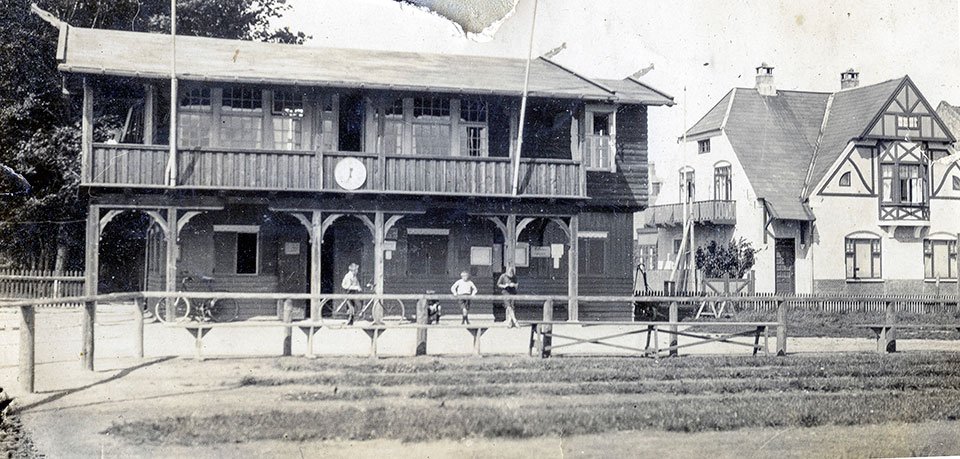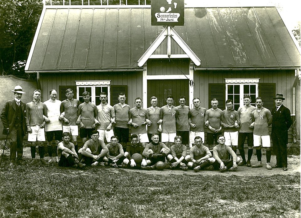 I 1944 blev det nuværende stadion indviet. Skive kommune havde egentlig lovet Skive Idrætsklub et nyt klubhus, men det kunne man ikke få materialebevilling til, så i stedet overtog kommunen klubhuset og flyttede det til det nye stadion, Foto ca. 1946.